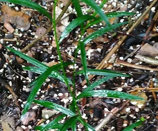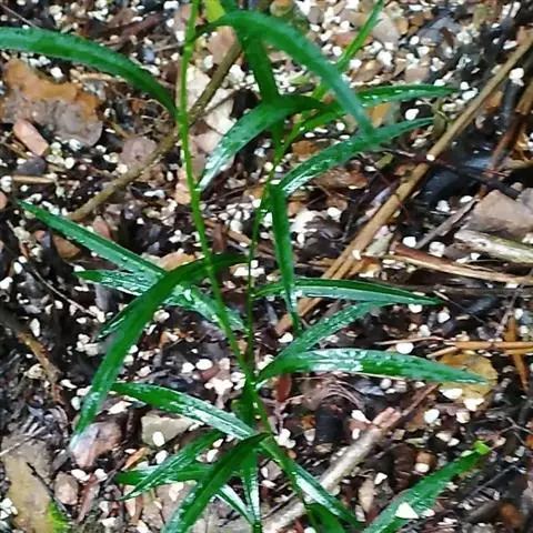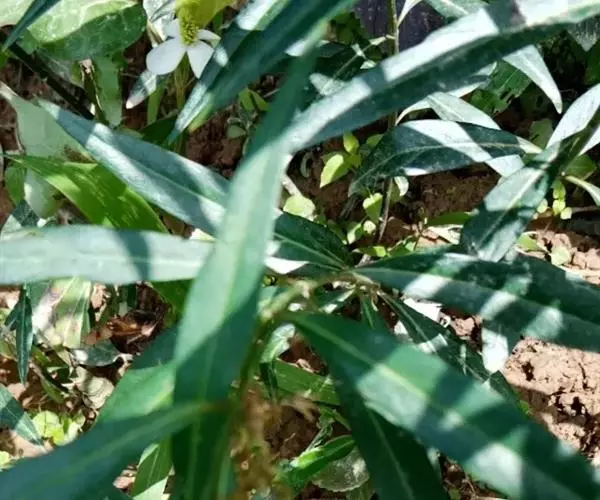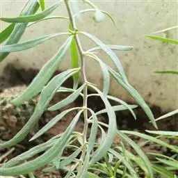 直立半灌木,高约1米,无毛,分枝或不分枝;须根纤细、节上丛生。叶对生,纸质,狭披针形,长6-13厘米,宽3-5毫米,两端渐尖;中脉在叶背显著,侧脉约6对;叶柄长约5毫米。
