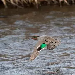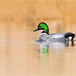 绿翅鸭是小型鸭类,体长37厘米,体重约0.5千克。嘴脚均为黑色。雄鸟头至颈部深栗色,…
