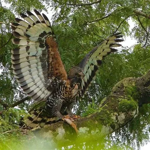 食猿雕(学名:Pithecophaga jefferyi):也称作菲律宾雕。体型大,体长91厘米,翼展200-250厘米,体重6500克,寿命30年。喙和爪均强健,上喙边端具弧形垂突,适于撕裂猎物吞食;基部具蜡膜或须状羽;翅强健,翅宽圆而钝,扇翅及翱翔飞行,扇翅节奏较隼科慢;跗跖部大多相对较长,约等于胫部长度,腿部羽毛一直覆盖接近至脚爪。雌鸟显著大于雄鸟。