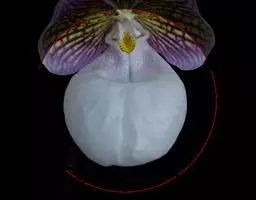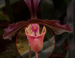 花瓣近狭卵形,长9-10毫米,宽2.5-3毫米,先端短渐尖;唇瓣近倒卵形或长圆形,长9-10毫米,3裂;侧裂片较小;中裂片近圆形,长4-5毫米;唇盘上有(3-)5条纵褶片,从基部延伸至中裂片上,从接近中裂片开始一直到中裂片上褶片均分裂成流苏状;基部的距圆筒状或后期略呈棒状(因中部缢缩而末端较粗),长3-3.5毫米,常略向前弯曲;蕊柱长4-5毫米(不连花药),无蕊柱足。