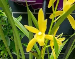 美冠兰(学名:Eulophia graminea Lindl.):假鳞茎卵球形、圆锥形、长圆形或近球形,直立,常带绿色,上部有数节。叶3-5枚,在花全部凋萎后出现,线形或线状披针形。花葶从假鳞茎一侧节上发出,高43-65厘米或更高,总状花序直立,长20-40厘米,常有1-2个侧分枝,疏生多数花;花橄榄绿色,唇瓣白色而具淡紫红色褶片;花瓣近狭卵形,长9-10毫米,宽2.5-3毫米,先端短渐尖;唇瓣近倒卵形或长圆形,长9-10毫米,3裂。蒴果下垂,椭圆形。花期4-5月,果期5-6月。
