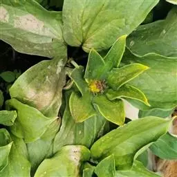 2、七叶一枝花,多年生草本,高30-2500px。茎直立。叶5-8片轮生于茎顶,叶片披针形、倒卵状披针形或倒披针形,长7-425px.宽2.5-125px。花梗从茎顶抽出,通常比叶长,顶生一花,萼片4-6,叶状,绿色,长3-175px;花被片细线形,黄色或黄绿色,宽1-1.5mm。长为萼片的1/3至近等长;雄蕊8-10,花药长1.2-50px。蒴果球形。花期5-7月,果期8-10月。生于山坡林下荫处或沟谷边的草丛阴湿处。