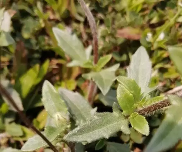 茎纤细,平卧,节处常生多数不定根,长30-100厘米,基部径约3毫米,略呈四方形,分枝,被倒向糙毛或脱毛,节间长4-9毫米。基部叶略小,花期凋萎;中部叶有长达1厘米的柄,罕有长2-3厘米的,叶片披针形或卵状披针形,长4-8厘米,宽2-3厘米,基部渐狭或几近楔形,顶端披针状渐尖,边缘有不规则的粗齿和细齿,近基部常浅裂,裂片1-2对或有时仅存于叶缘之一侧,两面被基部为疣状的糙伏毛,基生三出脉,两侧的1对较细弱,有时不明显,中脉中上部间或有1-2对极不明显的侧脉,网脉无或极不显著;上部叶小,卵状披针形至狭披针形,具短柄,长2-3厘米,宽6-15毫米,基部近楔形,顶端短尖至渐尖,边缘有粗齿或基部近浅裂。