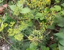 果实卵形或卵圆形,长约4.5毫米,宽4毫米,基部有瘤状突起,上部有淡黄色和金黄色的钩状皮刺,分生果横剖面卵形,油管5。花果期6—9月。