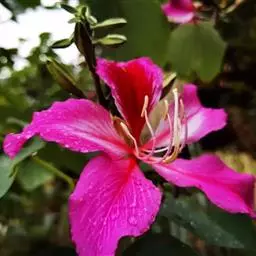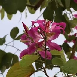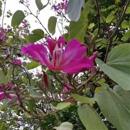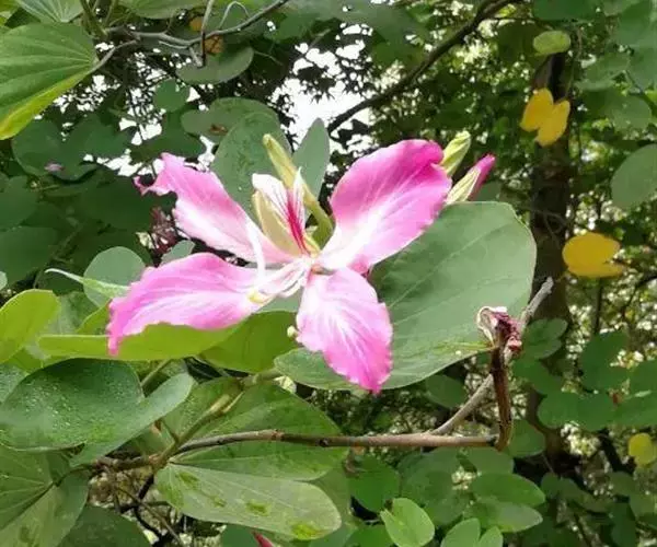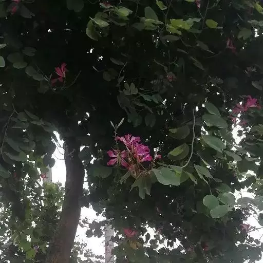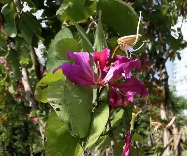 人们常以赞美之笔,描绘南国的鲜花。可是,洋紫荆——原名“羊蹄甲”的花,却常常被人所忽略,这大概是因为它既不是草本植物,又不是灌木盆栽,而是生长在乔木上的缘故?是因为年宵花市上,从来没有人摆卖这种花?是因为在广州,它不过是极为寻常的街道树?尽管如此,洋紫荆仍不失为南国一种极为出色的鲜花。站在紫荆树下,但见一树繁花,宛如千万彩蝶云集,好像走进了梦幻境界,也令人禁不住想起云南驰名四方的蝴蝶泉。