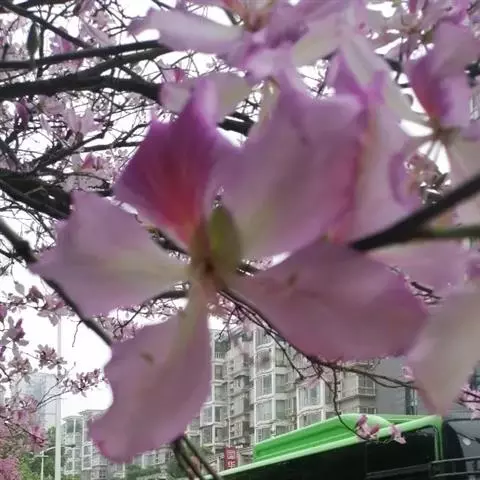 不知道洋紫荆有几个不同花色种类的人,每每以为它们不断在变幻着颜色,像被称做“娇容三变”的木芙蓉似的。他们哪里知道,这是紫荆树的家族,为了献出色彩缤纷的鲜花而进行着接力赛跑哩!你看,从隆冬到暮春,洋紫荆陆续开花,紫色、红色、粉红色,次第开放,要足足闹腾好几个月。最先开花的是紫色那一种,花期竟是在寒风凛冽的春节前夕,和炮仗花、梅花同时绽开花蕾。它着实可以称得上是南国的报春使者!