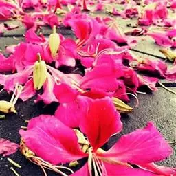 不是吗?在整个人生的长路上,不是都开着像羊蹄甲一样迷迷潆潆的花树吗?往前看过去的时候,总是看不真切,总是觉得笼罩着一层缥缈的烟雾,等到真的走到树下了,却又只能看到一朵一朵与远看时完全不同的单薄细润的花朵。只要稍微迟疑,风就吹过来,把它们一瓣一瓣的吹散,轻柔地拂过你的脸颊,在你的发间或者肩膀上留下一点淡淡的幽香,然后就静静地落在你身后的草丛里,逐渐褪色,逐渐消逝,静静地望着你向前走去,向着另外的一棵迷潆的花树走去。