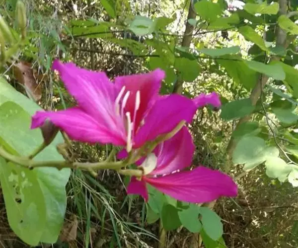在高纬度地方,人们大概是看不到这种洋紫荆的。我有一个朋友,由于喜爱这种花树,特意起了个带“荆”字的名字,抗日战争时期,他北上延安参加革命,后来牺牲了。他的妹妹回南方省亲的时候,特意采了洋紫荆的几片叶子和花朵,夹在书里带回北方,好让孩子们知道“荆”字的来历,生命本应该这样地繁花似锦呵!