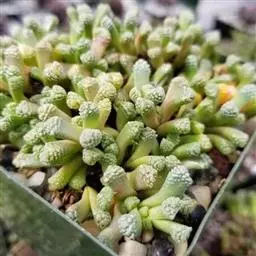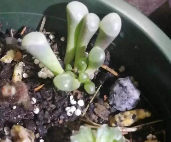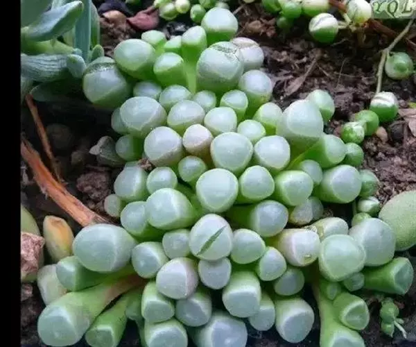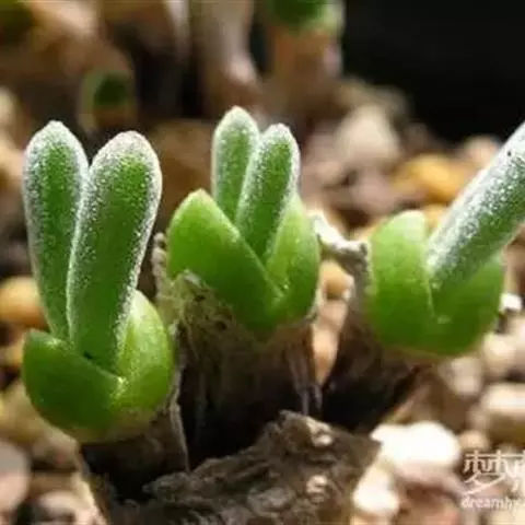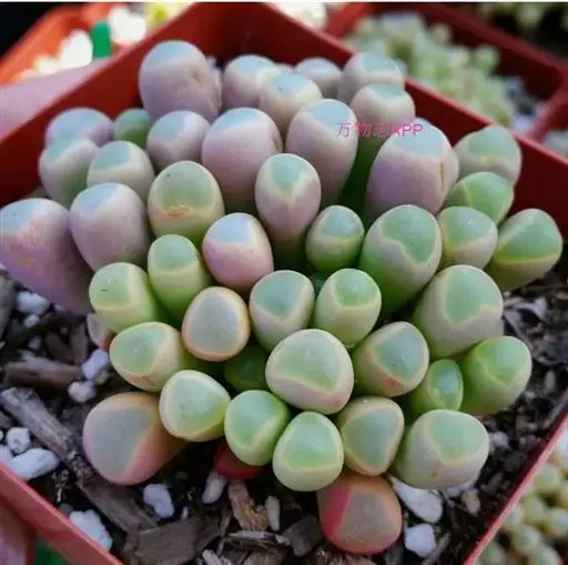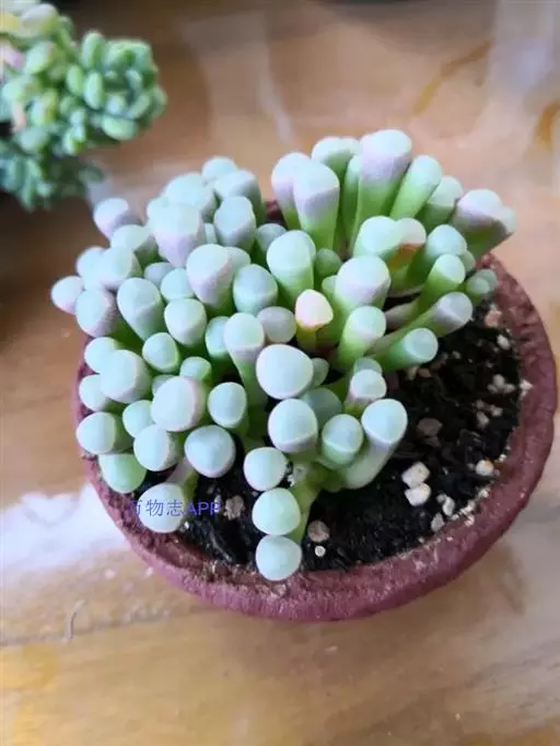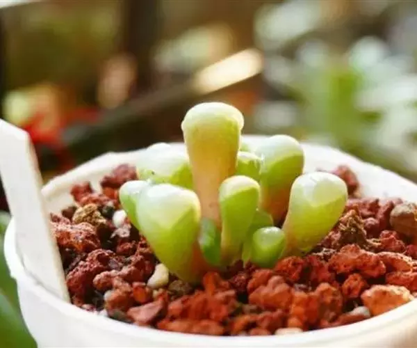 五十铃玉形态奇特,珠圆玉润,富有光泽,在欧美地区,人们都习惯称它“婴儿脚趾”,是室内盆栽的珍奇品种之一。