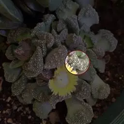 多年生肉质草本植物,植株密生成丛,株高5厘米,株幅30厘米。茎极短或无茎,根部与叶基部连接处木质化。