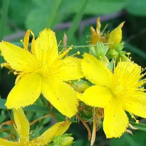 金丝桃果实:性味:甘。主治肺病,百日咳。