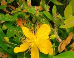 金丝桃 金丝桃是一种中草药,根茎叶花果均可入药,抗抑郁、镇静、抗菌消炎、创伤收敛,尤其是抗病毒作用突出,能抗DNA、RNA病毒,可用于艾滋病的治疗。以金丝桃提取的金丝桃素已经贵若黄金,应用于美容医疗。