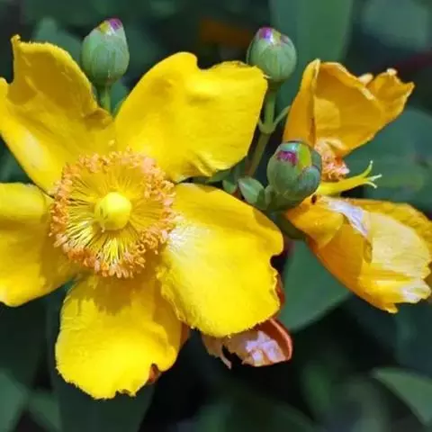 金丝桃 灌木,高0.5-1.3米,丛状或通常有疏生的开张枝条。