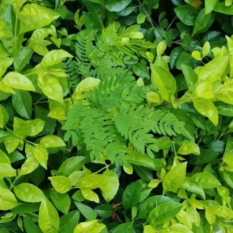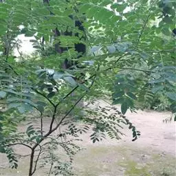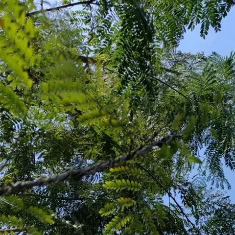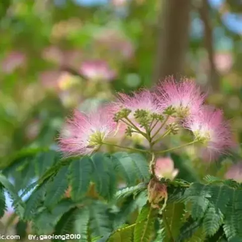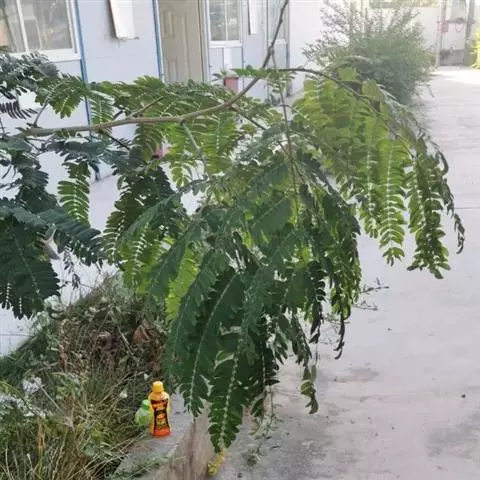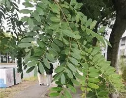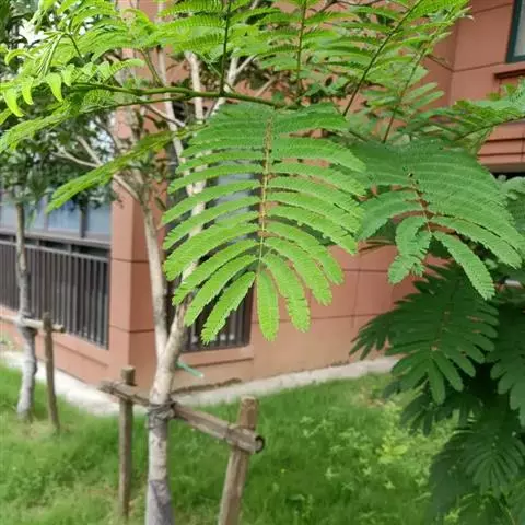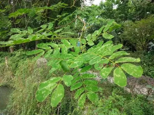 高8-12米;树皮粗糙;嫩枝密被短柔毛,老枝无毛。二回羽状复叶;总叶柄近基部及叶轴上羽片着生处均有腺体;叶轴被短柔毛或无毛;羽片2-4对,长6-15厘米;小叶4-8对,长椭圆形或略斜的长椭圆形,长2-4.5厘米,宽(0.9-)1.3-2厘米,先端圆钝或微凹,两面无毛或下面疏被微柔毛,中脉略偏于上缘。
