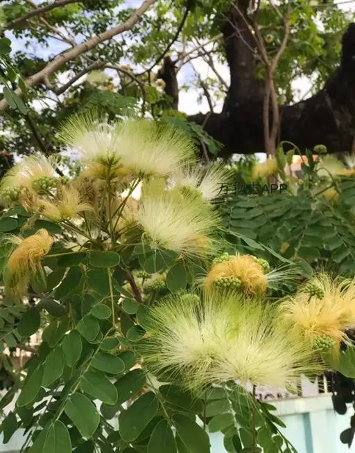 头状花序花时直径3-4厘米;总花梗通常长7-9厘米,1至数个聚生于叶腋;小花梗长3-5毫米;花芳香,花萼管状,长约4毫米,被微柔毛;花冠黄绿色,长7-8毫米,裂片三角状卵形;雄蕊白色或淡黄绿色。荚果带状,长15-28厘米,宽2.5-4.5厘米,扁平,麦秆色,光亮,无毛,常宿存于树上经久不落;种子4-12颗,椭圆形,长约1厘米,棕色。花期5-9月;果期10月至翌年5月。
