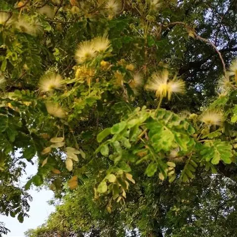 阔荚合欢(学名:Albizia lebbeck (Linn.) Benth.)是豆科合欢属植物,高8-12米;树皮粗糙;嫩枝密被短柔毛,老枝无毛。二回羽状复叶;总叶柄近基部及叶轴上羽片着生处均有腺体。头状花序花时直径3-4厘米;总花梗通常长7-9厘米。荚果带状,扁平,麦秆色,光亮,无毛,常宿存于树上经久不落;种子4-12颗,椭圆形,。花期5-9月;果期10月至翌年5月。