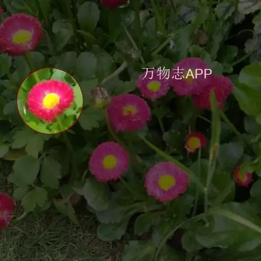 雏菊(学名:Bellis perennis L.),又名马兰头花、延命菊,春菊、太阳菊等。是菊科雏菊属植物的一种,多年生草本植物。高10厘米左右。