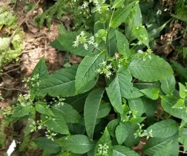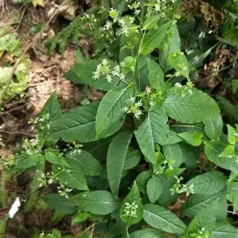 露珠草(云南种子植物名录)牛泷草(中国高等植物图鉴),心叶露珠草(台湾植物志) ,别名:水珠草,拉丁文名:Circaea lutetiana L.柳叶菜科、露珠草属植株高15-80厘米;根状茎上不具块茎;茎无毛,稀疏生曲柔毛。叶狭卵形、阔卵形至矩圆状卵形,基部圆形至近心形,稀阔楔形,先端短渐尖至长渐尖,边缘具锯齿。单总状花序或基部具分枝;花梗与花序轴垂直,被腺毛,基部无小苞片。梨形至近球形,基部通常不对称地渐狭至果梗,果上具明显纵沟;成熟果实连果梗长5.3-8.5毫米。花期6-8 (-9)月,果期7-9月。