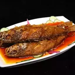 干烧小黄鱼 是由黄鱼等制作的食物,配料是葱、姜、蒜。