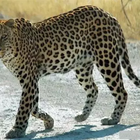 花豹(学名:Panthera pardus)是大型肉食性动物,体形似虎,但明显较小;头小尾长,四肢短健;毛被黄色,满布黑色环斑;头部的斑点小而密,背部的斑点密而较大,斑点呈圆形或椭圆形的梅花状图案,又颇似古代的铜钱,所以又有“金钱豹”之称。前足5趾,后足4趾,爪灰白色,能伸缩。