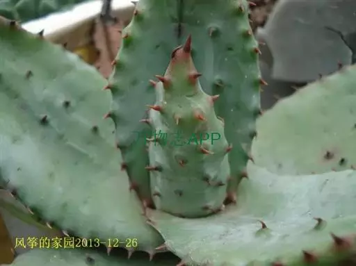常绿乔木,单干生,茎粗壮,老茎常留有枯叶,可达2-4米高,基部粗达50cm;叶肉质大型,聚生茎顶,略弯,长1.8-2m,基部宽达20-30cm,叶背与叶缘生有粗壮的刺。;花序大型,于植株顶端假顶生,高达1-1.5m,有5-10分枝,开花时由橙红色变为黄色,密集生于花序中上部。
