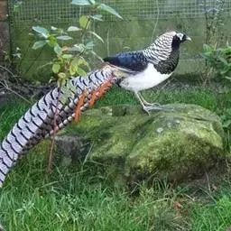 白颈长尾雉:大型鸡类,体长81厘米,体型大小和雉鸡相似。雄鸟头灰褐色,颈白色,脸鲜红色,其上后缘有…