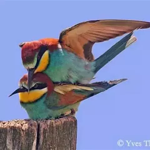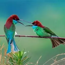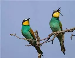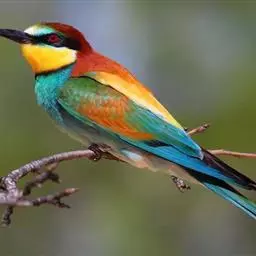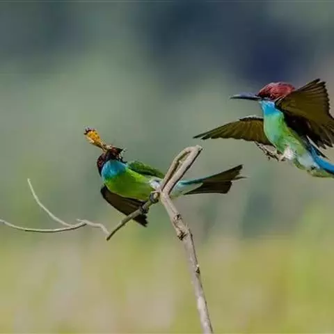 蓝颊蜂虎:是蜂虎科、蜂虎属的鸟类,共有2个亚种。体长27-33厘米,翼展46-49厘米,…