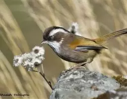 棕头雀鹛为鸦雀科,褐鹛属小型鸟类,体长10-13厘米。头顶栗褐色具黑色侧冠纹。上体茶黄色,…