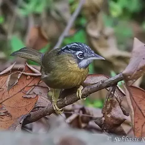 白眉雀鹛是鹟科、雀鹛属的鸟类。头顶暗灰褐色,有粗著白眉纹,眉纹上、下方又有宽阔黑纵纹;上体茶黄棕,…