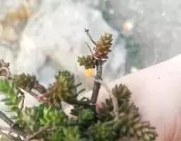 多年生草本,常年蓝绿色,非常的好养,植株叶片交互环生,容易长小侧芽,能够长成大串的一群,时间长了有枝干,枝干无法支撑强大的枝条基本会匍匐生长,簇状花序,花开黄色,异花授粉。
