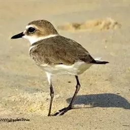 雌鸟额、头顶、枕和后颈棕褐色,头侧、颈侧以及前颈淡棕色,肩羽灰褐色,翅上次级覆羽灰色,颏、喉白色,微缀棕色,体两侧灰色而具白斑。余同雄鸟。