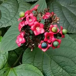 臭牡丹,唇形科大青属灌木,植株有臭味;花序轴、叶柄密被褐色、黄褐色或紫色脱落性的柔毛;小枝近圆形,…