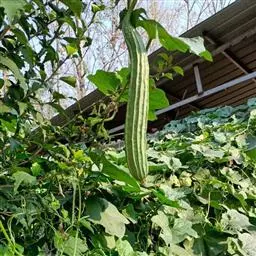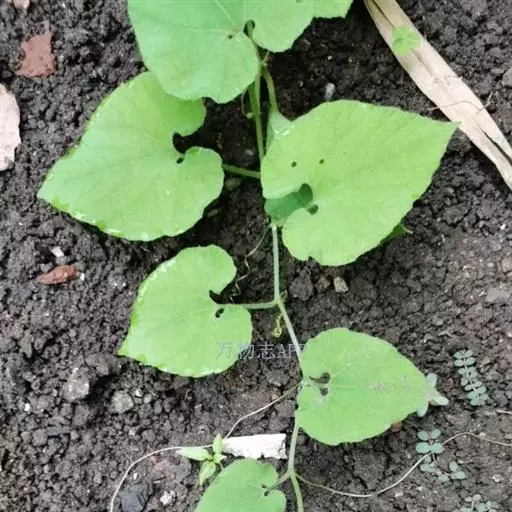 播种后约25天左右出苗。岗地出苗快,洼地山苗较慢。苗高10厘米时定苗,每穴留一株。在上架前,抓紧除草松土三次,过晚茎叶伸展,架条阻扼,不利作业。当苗高50左右时,要搭架,每四穴的架条结扎在一起,然后将各个赤瓟架用横杆联结起来,绑牢即可(搭架方式同豆角架)。当苗高66-83厘米时领蔓,以利植株攀援生长。