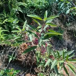 常绿 直立灌木或小乔木,高2-4米;小枝锐四棱形或呈翅状,无毛,髓部充实。叶片近革质,长圆形或长圆状披针形,长11-18厘米,宽2.5-4厘米,顶端渐尖或长渐尖,基部狭楔形,全缘,两面无毛;侧脉7-8对,在表面略显著,近边缘弧状网结,细脉略显;叶柄长约1厘米。