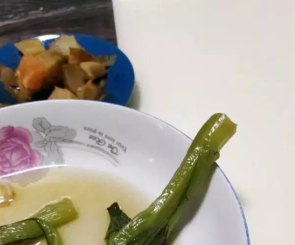 配料:油麦菜适量,大蒜、葱、蚝油(没有的话可以用老抽代替)。