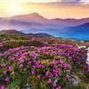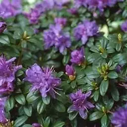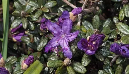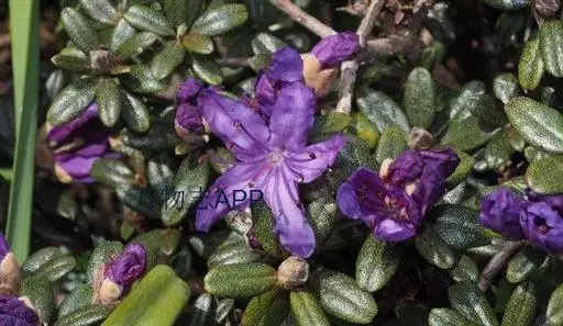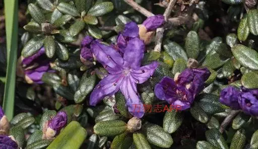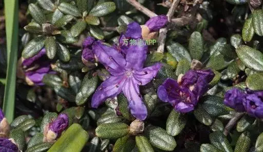 密枝杜鹃(学名:Rhododendron fastigiatum Franch. ):常绿灌木,高0.8-1米,分枝稠密,常成垫状或平卧。幼枝短,带红褐色,被暗褐色鳞片。叶芽鳞早落。叶集生于小枝顶端,革质,长圆形、椭圆形或卵形上面暗绿色,下面灰绿色。花序顶生,伞形总状,有花3-5朵;花冠宽漏斗状,长1-1.5厘米,紫蓝色或鲜淡紫红色。蒴果卵圆形。花期5-6月,果期8-9月。