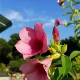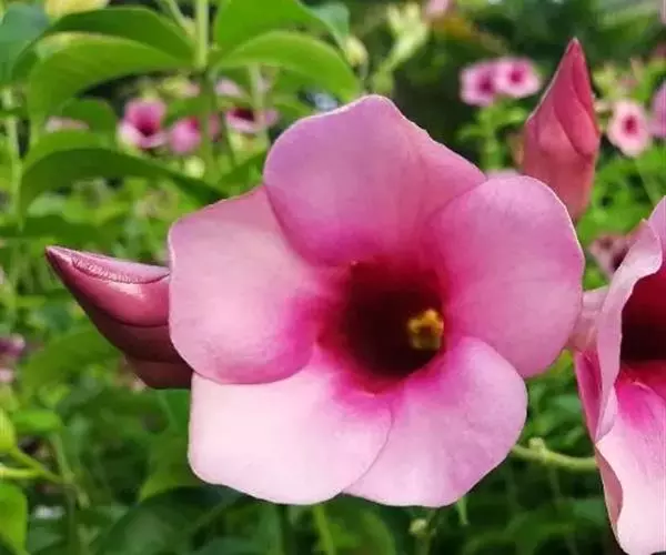 紫蝉花的茎呈蔓性,全株有白色体液。叶4枚轮生,长椭圆形或倒卵状披针形。春末至秋季开花,腋生,漏斗形,花冠5裂,暗桃红色或淡紫红色,柔美悦目,花期长达3-4个月。紫蝉花,优美木本花卉,喜温暖、湿润,适合于红壤,原产于巴西,属野生资源(个体),该品种优质、抗逆,主要用途是供观赏