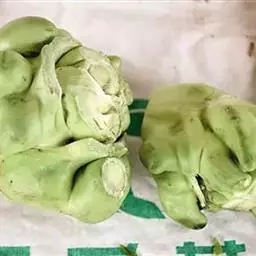 花球:是整株花椰菜体现主要经济价值的产品,由短缩肉质花茎系统组成的球状贮藏器官,它是由肥嫩的茎轴和很多的肉质花梗及绒球状的花枝顶端包括许多分化到花序阶段的花芽原基聚合而成。花球是花椰菜营养贮藏器官,贮有大量营养物质,是人们食用部分。据观察,一个花球主轴上约有50~60个小花球,基部小花球粗2~3cm,中心部的小花球不足Icm。花椰菜的花球组织非常致密,在花枝顶端继续分化的花芽,能开花的是极少数。正常的花球是半球形,球面是规则的左旋辐射轮状排列,表面是颗粒状,质地致密。花球作为上市的产品,洁白匀称,表面无茸毛,能创造更好的经济效益,如遇不良气候或不合适栽培环境,花球会出现“青花”、“毛花”与“紫花”等异常现象而影响了上市。