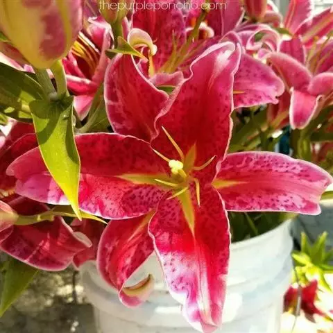 采收后,去掉下部10厘米的、叶子,然后分级和捆扎。以10厘米一个等级为宜。捆扎在一束中的百合,最长枝与最短枝最好不超过5厘米,花顶部对齐。