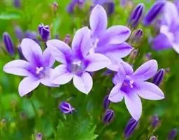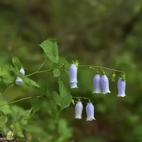 丛生风铃草:植株高20-40厘米。基生叶圆心形,叶片上部较窄成圆卵形;花朵单生,有较长的花梗;花萼…