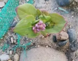 下胚轴不甚发达,呈玫瑰红色,上胚轴欠发达。子叶长椭圆形,长0.5一0.8厘米,较肥厚,无叶柄,基部联合;初生叶一片,狭披针形,先端微钝,基部楔形,叶面被绵毛并有紫红色斑点,全缘;第二片真叶叶下面被大量絮状白色长绒毛,托叶鞘筒状,先端截平。