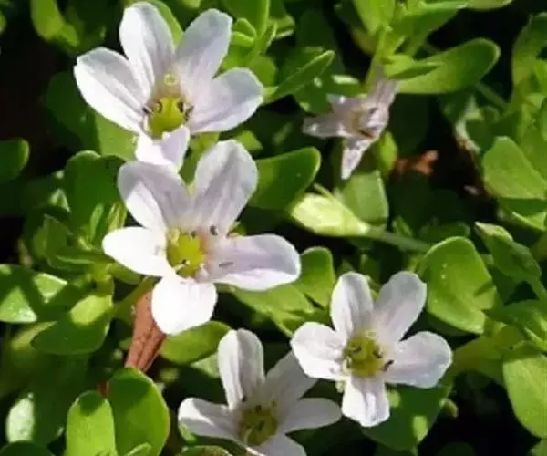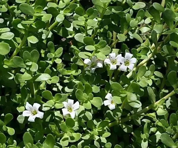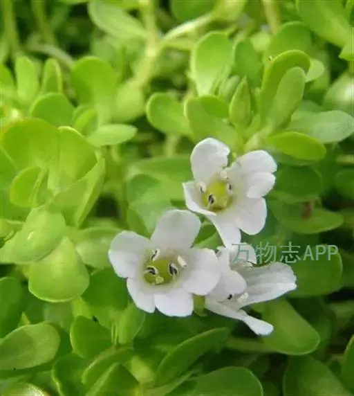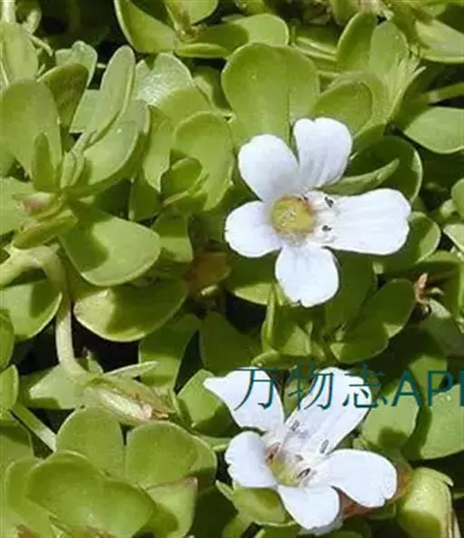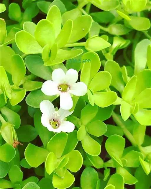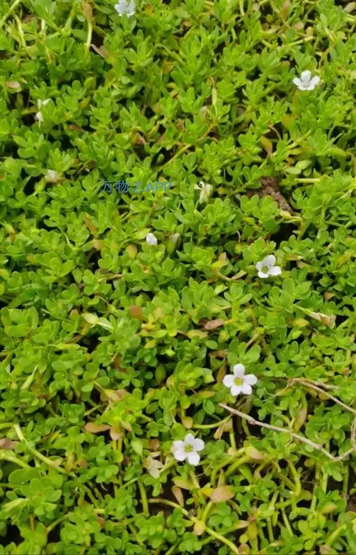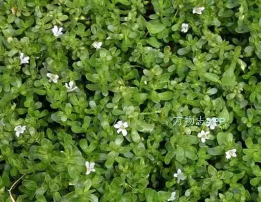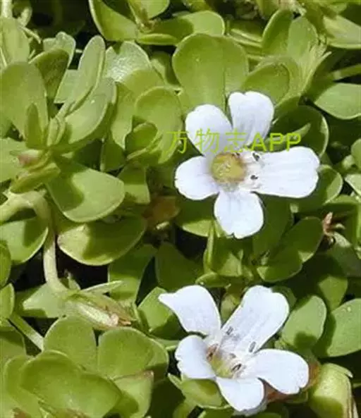 假马齿苋(学名:Bacopa monnieri (L.) Wettst.)斯玄参科匍匐草本植物。匍匐草本,节上生根,多少肉质,无毛,体态极象马齿苋。叶无柄,矩圆状倒披针形,长8-20毫米,宽3-6毫米,顶端圆钝,极少有齿。花单生叶腋,花梗长0.5-3.5厘米,萼下有一对条形小苞片。蒴果长卵状,顶端急尖,包在宿存的花萼内,4爿裂。种子椭圆状,一端平截,黄棕色,表面具纵条棱。花期5-10月。