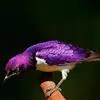 在飞行或栖息时喋喋不休,经常大群地聚集在一起。分布广泛的紫翅椋鸟捕食大量的昆虫,但也吃谷物和小果实,与其他鸣禽剧烈地争夺食物。自从1890年引进北美(纽约中央公园)以来,此鸟已成群地增加,在城效和市区普遍地被视为害鸟。繁殖期间集大群营巢,最多可达千只。鸟群常飞得很低,远看宛如一大片浮云。而在啄食地上的蝗虫及卵时,鸟群好像滚滚的波涛向前汹涌。当蝗虫迁飞时,它们腾空而起,在空中进行捕捉。