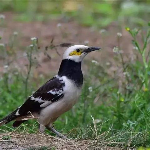 灰椋鸟俗称高梁头,管莲子。为中国常见的候鸟。主要特点是头顶和颈部黑色,前额和头侧白而杂以黑纹,体背面灰褐色,腰及腹部为白色;尾羽黑色,先端具白斑;嘴、脚为橙红色。迁徙时,常成群栖于树上,或旋翔于空中,飞行疾速。其体灰褐色,头上黑,两颊白,野外较易鉴别。
