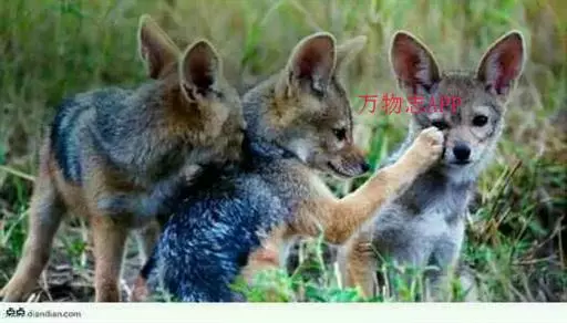 四十万年前,恐狼DireWolf(Canisdirus)出现了,它的体型比现代的狼大,在很长一段时间内,它和狼并存在世界上,直到一万年前才灭绝。它的身体构造和现代的狼完全不同,身体更健壮结实,四肢比较细而且短,比较像鬣狗。它的下颚组织很大,使它有能力咬碎骨头。它在食物链上的位置也和鬣狗类似,更大程度上是食腐者而不是猎手。它们的智力可能比较低,在加利福尼亚的LaBrea沥青坑中,发现的恐狼的骨骸远比其他动物多的多,整整3600具! 黑背胡狼 除了恐狼以外,其他几个狼的世系也在这个时期开始发展。Canisedwardsii是北美洲最早进化的狼,出现于150到180万年前,最终这一支进化成为了现代狼Canislupus。