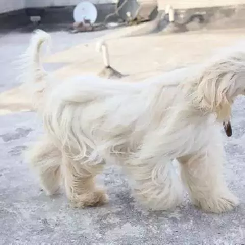 拉萨犬是食肉目犬科犬属哺乳动物。头盖狭窄,黑色的鼻子及丰厚的长毛;两颊胡须及颚部胡须很长;厚实的耳朵下垂;眼古铜色,大小中等,椭圆状;身长比身高长,背部水平,腰部强健;被毛上毛长粗且直,下毛丰厚;沿着背骨,被毛左右清楚分开;四肢以足部由密集丰厚的长毛覆盖着;前肢直,后肢肌肉十分发达;足部坚挺呈圆形,肉趾特别厚;尾毛密集,尾跟高,尾巴朝上卷曲,毛尖容易纠结在一起。寿命为12-14年。拉萨犬原产于中国西藏,现广泛分布于世界各地。吃苦耐劳、个性独立友善、聪明自信、活泼热情、忠心耿耿且沉着冷静,但对陌生人有高度的警觉性。适合饲养在家庭中。不易训练。饲养管理上,需定时修剪会进入眼睛的毛;被毛需要经常擦拭和彻底梳理,以免显得脏污蓬乱。拉萨犬是西藏地区四大名犬之一。1934年,拉萨犬被认定为独立品种。据说饲养此犬者可以增福和驱魔,以前又称“驱魔圣犬”,现在则是非常理想的家庭犬。