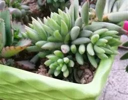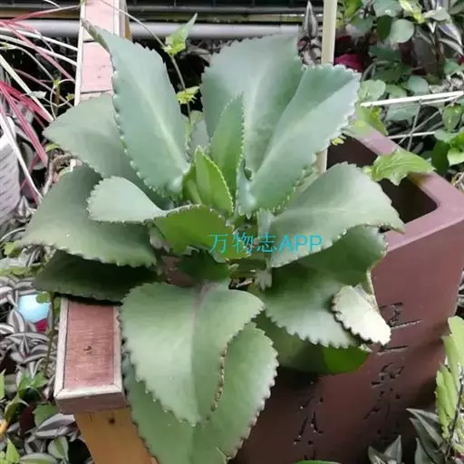 宽叶落地生根是最常见的多浆植物。其叶片肥厚多汁,边缘长出整齐美观的不定芽,形似一群小蝴蝶,飞落于地,立即扎根繁育子孙后代,颇有奇趣。用于盆栽,是窗台绿化的好材料,点缀书房和客室也具雅趣。