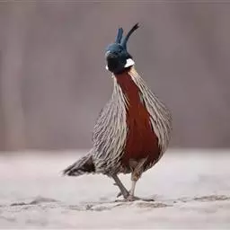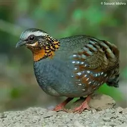 褐胸山鹧鸪:雄鸟体长22厘米,体重310克;雌鸟体长23厘米,体重220-275克。前额皮黄白色,…