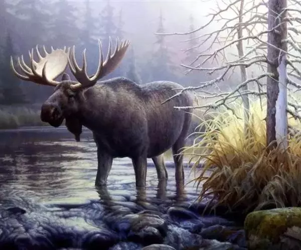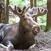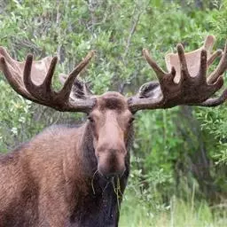 驼鹿(英文名称:moose):是世界上最大的鹿科动物,驼鹿属下共有2个物种8个亚种。驼鹿的名称取意于其肩高于臀,与骆驼相似。它又称堪达罕(满语)、犴达罕(满语)、犴,驼鹿在北美洲称为“moose”(源于东阿布纳基语的“moz”),而在欧洲称为“elk” (“elk”在北美洲被用来称呼加拿大马鹿)。以雄性的掌形鹿角为特征。驼鹿为典型的亚寒带针叶林食草动物,单独或小群生活,多在早晚活动。分布于欧亚大陆的北部和北美洲的北部。不同亚种的毛色有所不同。( 2005年由生物学爱威尔逊和里德认可驼鹿分为欧亚驼鹿和北美驼鹿为不同的独立的物种。)