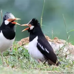 斑椋鸟:是中等体型的黑白色椋鸟,体长24厘米。头顶、头侧、翼斑、腰及腹部白色,喉、胸及上体余部黑色,…